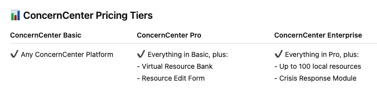 Absolutely! Our Virtual Resource Bank (VRB) can be added to any ConcernCenter platform. It includes over 250 carefully reviewed resources that can be accessed from anywhere—perfect for complementing your on-site support. You’ll find a mix of videos, podcasts, crisis text lines, national organizations, and more. Every resource has been vetted by our Mental Health Review Committee for quality and relevance.